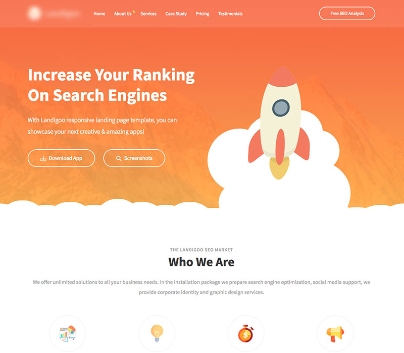 With FLaxSEO responsive landing page template, you can showcase your awesome seo services!